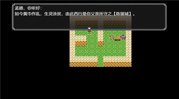 游戏采用复古像素画风,场景设计贴合历史背景。例如,陈留城的皇宫、汜水关的迷宫、长安的废墟等,均通过细节呈现乱世氛围。