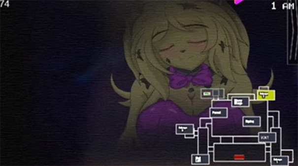门禁防御:左右门可阻挡娘化玩偶,但持续关门会加速电力消耗,需精准判断开关门时机。