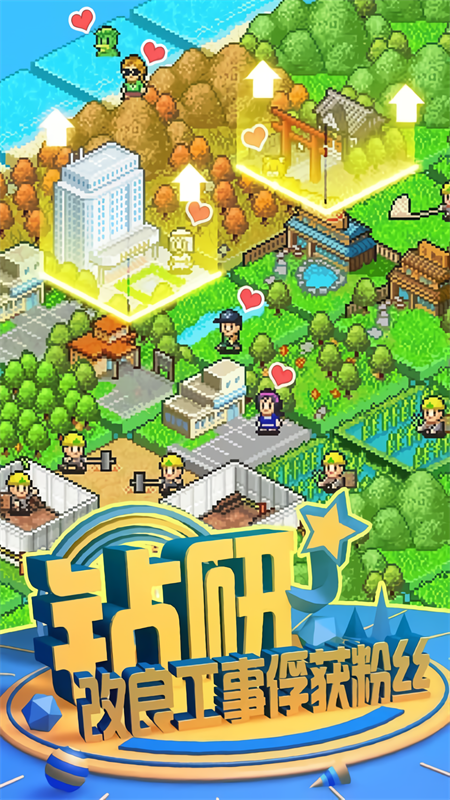 开罗经典像素美学:标志性的Q版像素画风、诙谐的NPC对话、充满细节的公园场景,营造轻松治愈的经营氛围。