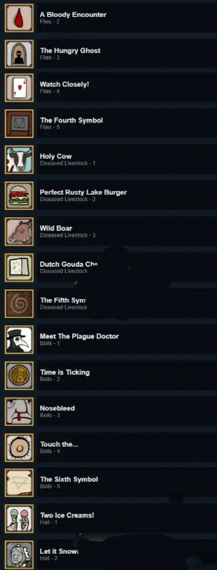 其实方法很简单,看界面上的那个图就能大致知道你哪一关缺了什么成就。比如第六关第三个成就没解锁,对应的图是一个鼻子流东西的样子,那就是第六关里“BOILS”相关、需要给奶奶闻东西的成就,给她闻血就能完成。只要通关过一周目,基本上都能猜出来。