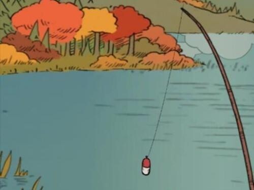6、当浮标周围出现光圈时,意味着有东西上钩了,此时点击浮标就能将其钓起,钓上来的可能是鱼,也可能是破靴子。