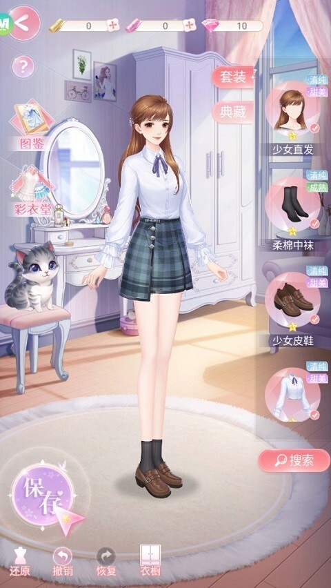 4、这里有丰富多样的服饰、配饰和完整套装可供选择,搭配好造型后你可以将其保存下来。