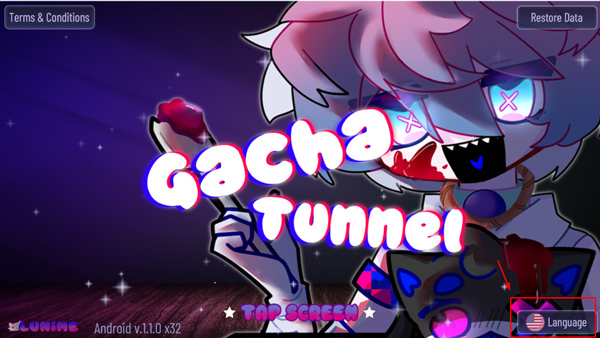 1、启动游戏后,点击界面上的【TAPSCREEN】区域,就能进入【GACHATUNNEL】的主界面,为角色创建及后续玩法做好准备。