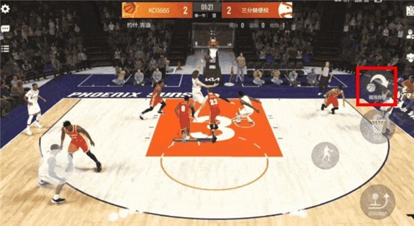 操作:在防守时将左摇杆推向场边,按下【盖帽/篮板】键,准备争抢篮板。