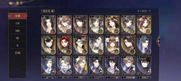 UR/SSR/SR/R品质名士信物价值逐级递减