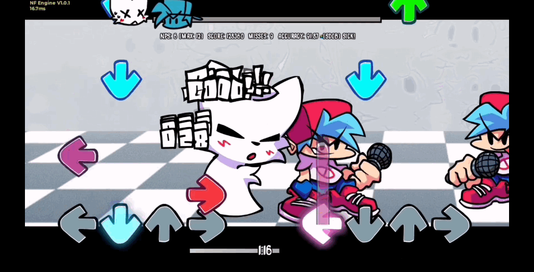 对FNF核心玩法的友好适配:保留“方向键+功能键”操作,判定规则与原版一致,曲目难度覆盖Easy至Expert,适合新手与硬核玩家。