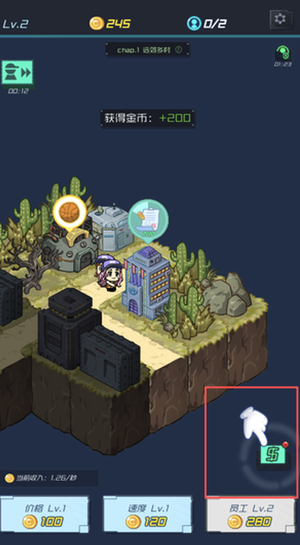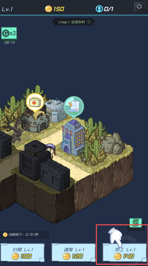 1、进入游戏后,先消耗初始金币升级员工的价格与速度基础属性。