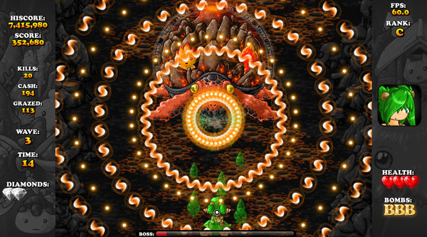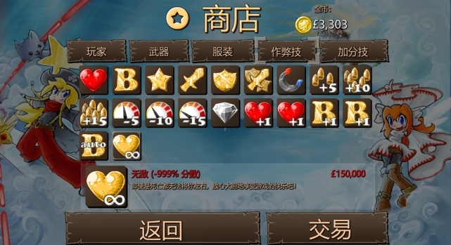 游戏除了「普通」「困难」「天堂」这几个难度外,还了强化武器、无限血量、道具吸附等作弊功能,就算你不太擅长弹幕类游戏,也照样能尽情体验其中的乐趣。