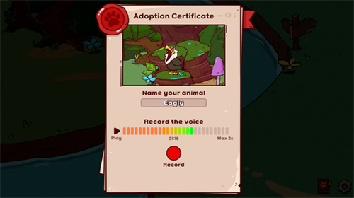 动物养成系统:动物拥有“亲密度”“饥饿度”“心情值”“成长阶段”等属性,通过声音互动提升属性,解锁新动作、新形态、新图鉴。