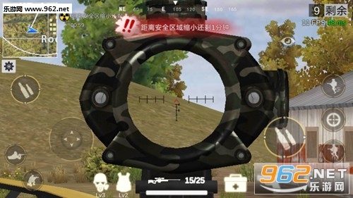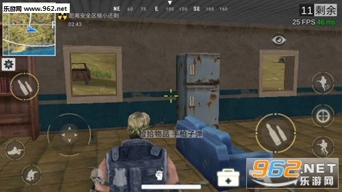 游戏中我们还需要随时点开左上角的地图,查看 安全 区在哪里,随着安全区不断缩小,我们要一直朝着安全区前行,不能在外面的危险区域,否者会被毒死。