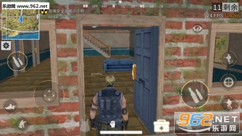 降落之后,我们就尽 快跑 到有房子的地方,然后找到房子大门进去,走到门口的时候屏幕会出现开门按钮, 点击 一下即可开门进入了。