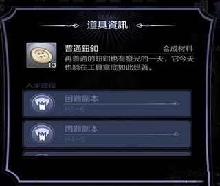 -普通纽扣:6个,可在困难副本1-6、4-5、6-1中获得。