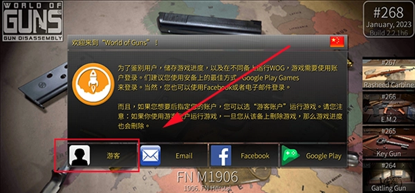 2、接下来会弹出登录界面,即便没有对应的账号也无需担心,点击“游客”选项即可免费游玩。