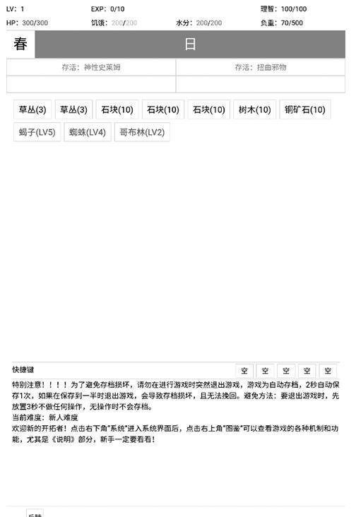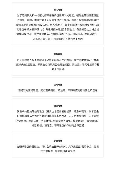 1、新手建议选【新人难度】,每小时降饥饿水分,升级赠2属性点,死亡原地复活经验清空。