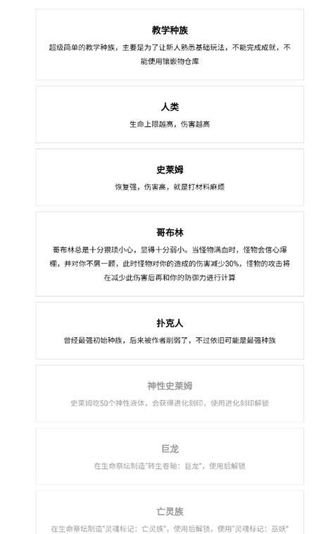 1、各个种族都拥有专属技能,哥布林能为矿石采集提供助力,史莱姆可辅助武器制造,借助种族间的协作能够提高资源获取的效率。