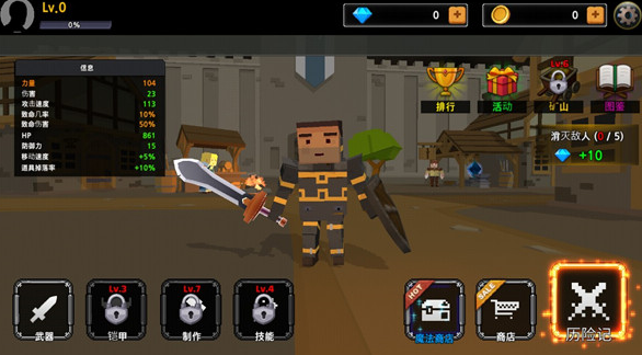 挖矿休闲玩法:通过采矿获取宝石、晶块等免费资源,用于兑换药水或制作装备,平衡战斗与休闲节奏。