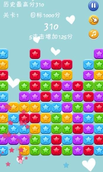 4、每成功闯过一关都能得到相应分数,快速通关以及消除更多星星都能让你获得更高分数。