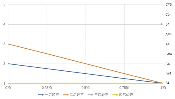 5、若需调整以唱为主的片段,可先按常规歌调教的方式选定旋律音高(这类说唱中每个字的基准音高存在差异,而以说为主的说唱片段或许整段下来基准音高都不会有明显变动),之后运用五度标记法对需要调整音调的字做特殊处理(以说为主的说唱变调规则应当也适用于以唱为主的说唱)。