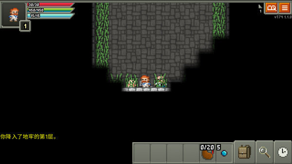 游戏的操控方式十分简便。玩家仅需点击屏幕,就能操控角色移动;点击眼前出现的敌人,角色便会自动发起攻击。游戏界面左下角设有三个按钮,分别对应“等待回合”“搜索环境”和“检查目标”功能。借助这些功能,你或许能在地下城中发现不少意外的收获。