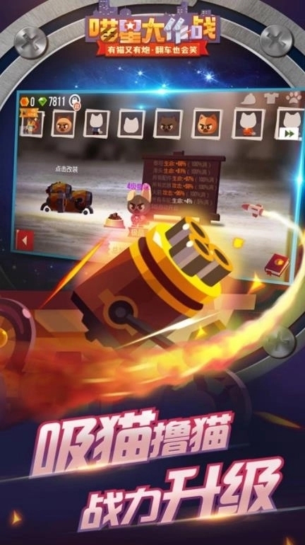 《喵星大作战正版》是由知名游戏开发商ZeptoLab打造的战车组装对战手游,全球玩家数量已超过1亿人,国服由北京星游无限科技有限公司代理运营-1-4。游戏的核心乐趣在于自由组装个性化战车——收集包括激光炮、电锯、火箭筒在内的超过200种配件,通过跷跷板滑板、飞天磐石等创意战术搭配,在10秒一局的快节奏PVP中轰翻对手-1-8。包含帮派3V3自由PK赛与世界锦标赛段位体系,支持iOS与安卓平台-1-4。你扮演的是一只坏坏的街头小猫,用自己独一无二的战斗机器人设计,智胜全球玩家-4。