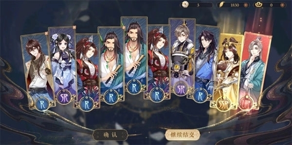 名士主要通过"结交"系统招募,消耗"花诏令"进行单抽或十连抽,UR保底为80抽。日常活动、主线推进、成就系统均可稳定获取花诏令。建议新手集中资源培养1-2个核心输出,不要平均分配资源。每月限定卡池会推出新名士,通常强度较高,建议预留足够抽数参与。R卡和SR卡虽然上限较低,但容易满突破,前期推图效率反而可能高于低突破的SSR。