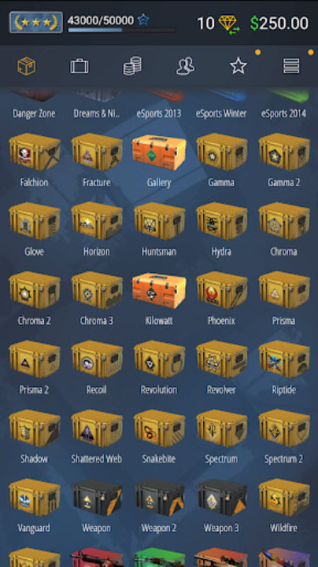 《CSGO开箱模拟器2》以模拟《CSGO》开箱为核心玩法,玩家通过虚拟货币购买钥匙,解锁常规武器箱、纪念品箱等不同类型箱子。开箱结果涵盖枪械皮肤、刀具、贴纸等道具,稀有度从消费级到隐秘级逐级区分。游戏内置市场系统,支持玩家出售重复或低价值皮肤,换取金币购买新箱子或升级仓库容量,形成“开箱-交易-再开箱”的循环体验。