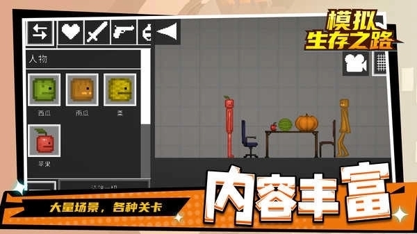 《模拟生存之路》以开放世界为舞台,玩家需在随机生成的地图中完成资源采集、工具制作、基地建设等核心任务。游戏采用像素化美术风格,降低硬件压力的同时营造复古氛围。玩家需应对昼夜交替、天气变化等环境因素,夜晚需躲避或对抗怪物袭击,白天则专注于探索与资源积累,逐步提升生存能力。