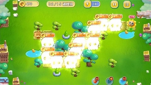 《花儿与少年》的玩法和经典塔防游戏《保卫萝卜》颇为相似,玩家要在地图里布置各类炮塔,来抵挡怪物的侵袭。游戏里配备了全屏炸弹、全屏冰冻、加血这类道具,能辅助玩家更有效地对抗怪物。玩家得持续解锁新的炮塔,依据地图的限制挑选合适的炮塔进行布局,以此提升游戏的策略性与挑战性。
