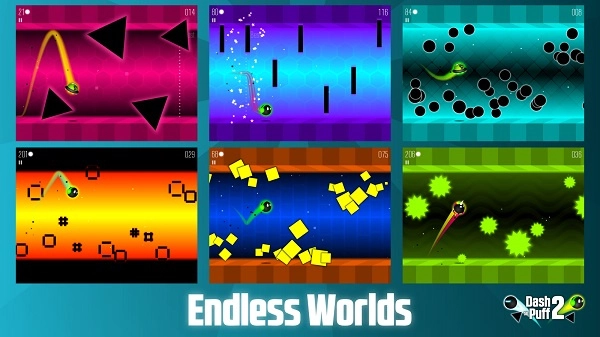 1、多元关卡世界:9个由程序生成的多彩无尽世界,每个世界都遍布未知挑战,障碍的几何形状与行为各不相同,为玩家带来持续的新鲜感。