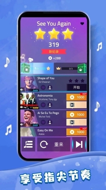 1、持续练习能让玩家慢慢养成出色的节奏感,更精准地跟随音乐节奏完成演奏,从而高效通过关卡挑战。