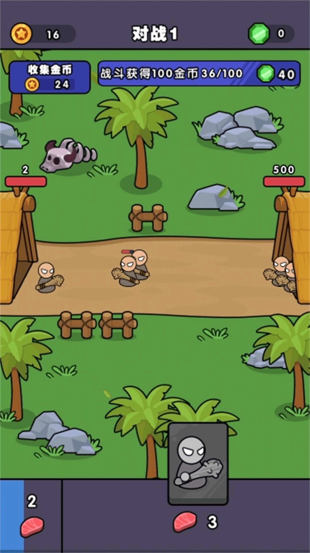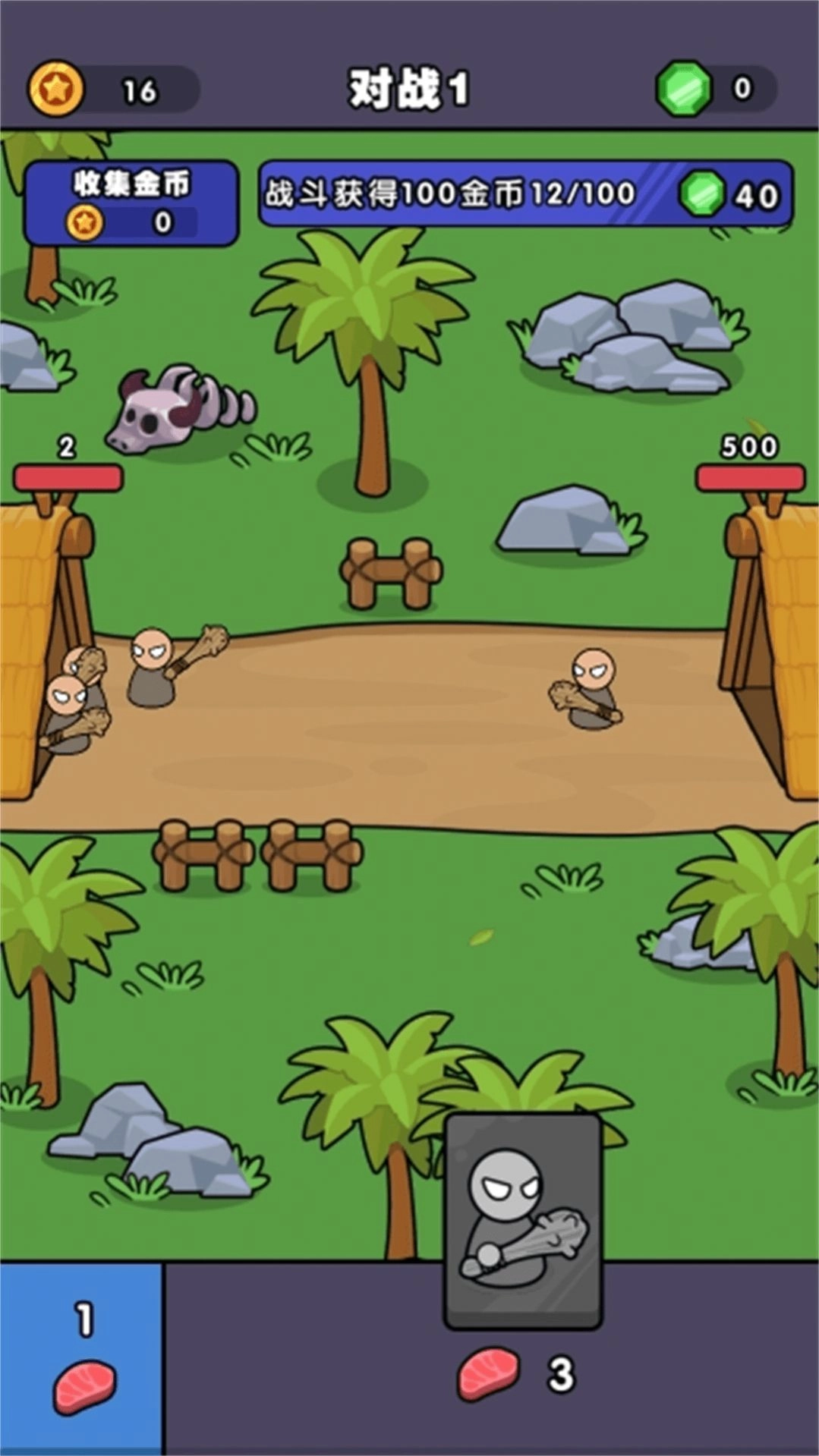 2.战斗过程中食物会自动收集,点击兵种头像就能消耗食物召唤士兵。