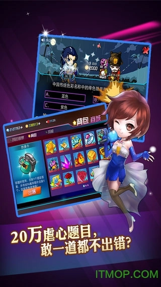 游戏界面与动画效果酷炫吸睛,操作简单流畅;节目主持人为游戏配音,项目团队的女生负责音乐制作;角色形象扩充至40多款,纪念胸章也同步开启有奖发放活动。