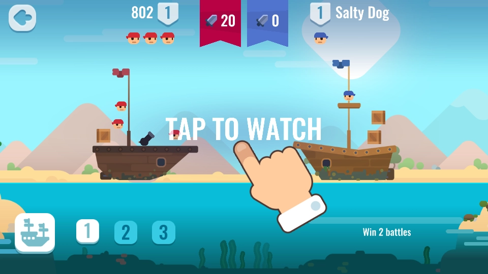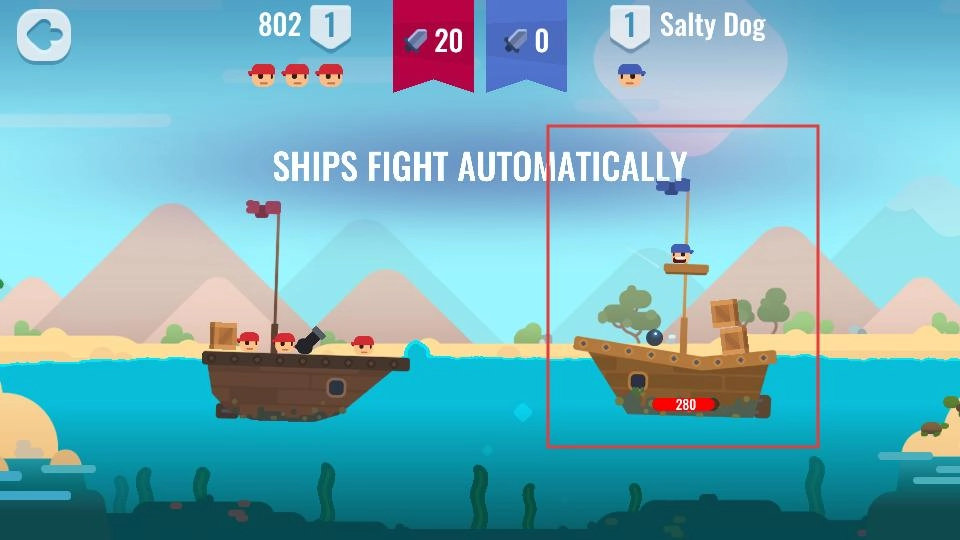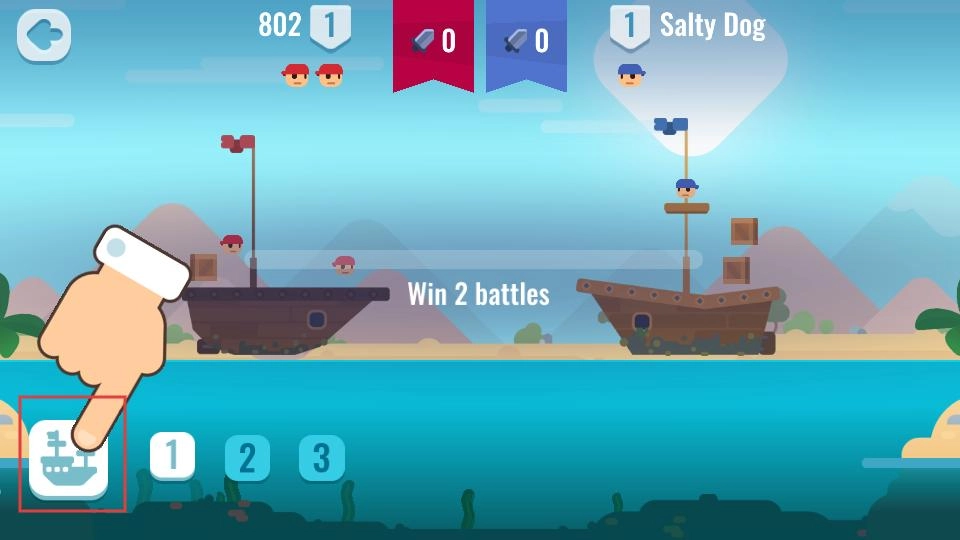 2、战斗时点击下方船的图标,派遣己方船只出战,和对手的船只在海上展开对决,开启刺激的海上战斗环节。