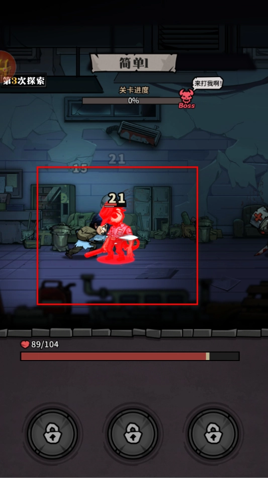 2、战斗时要注意僵尸的攻击,灵活躲避,同时找准时机对僵尸发起进攻,每次攻击会显示伤害数值,快速攻击僵尸。