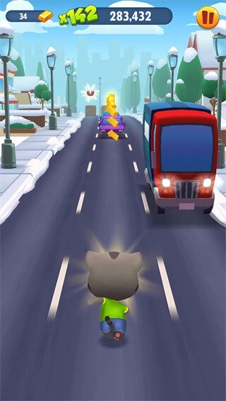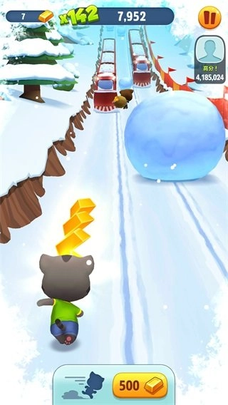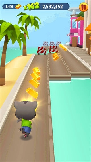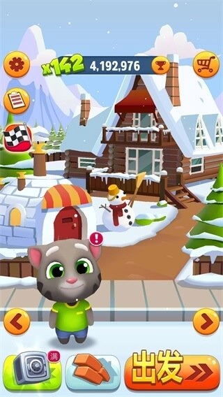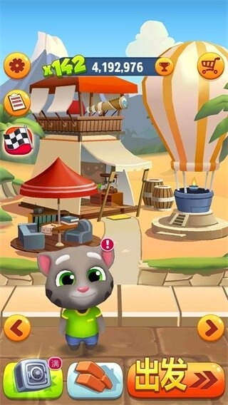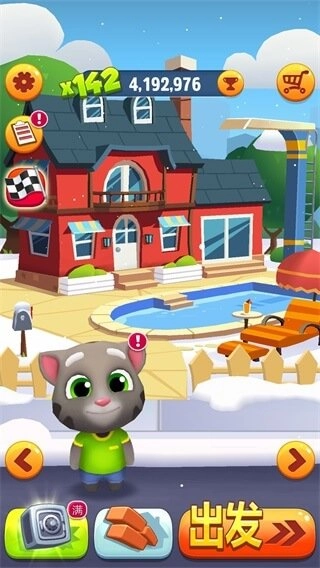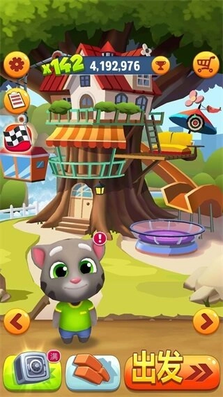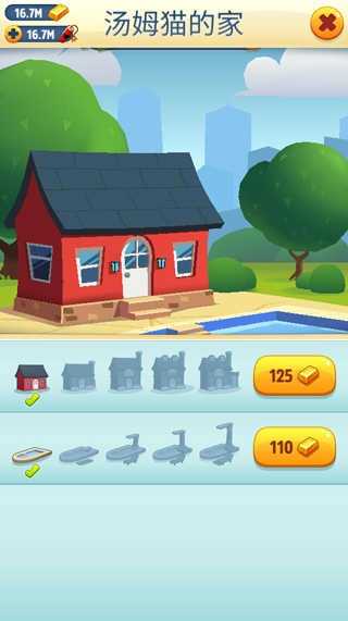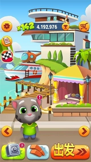 4、通过滑动屏幕控制汤姆猫左右移动和跳跃,收集金币与道具。游戏还加入了养成玩法,自由建造房屋,解锁有趣角色,完成任务。