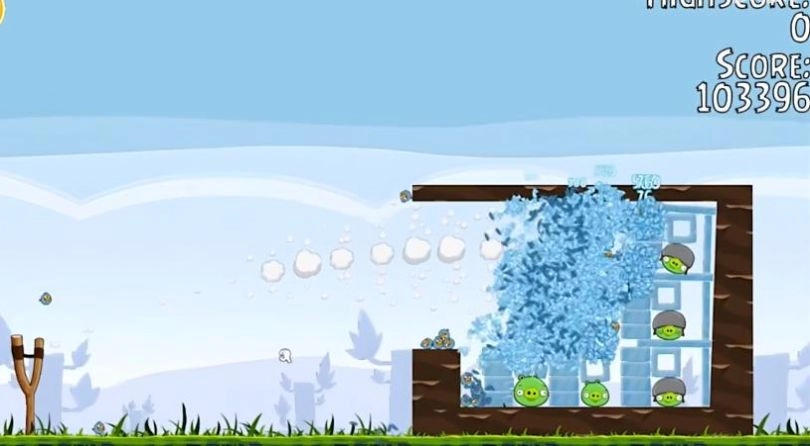 为了报复偷走鸟蛋的肥猪,鸟儿把自己当作炮弹般的武器,去撞击肥猪们的堡垒。愤怒的红色小鸟,奋不顾身地朝着绿色肥猪的堡垒砸去。这款游戏的玩法很简单:玩家用弹弓将小鸟弹射出去,击中绿色肥猪,把所有肥猪都砸中就能过关。小鸟的弹射角度和力度由玩家的手指操控,需要综合考虑力度与角度的配合,才能更精准地命中目标。被弹出的小鸟会留下弹射轨迹,方便玩家参考调整角度和力度。此外,每个关卡获得的分数越高,最终的评价等级也会越高。