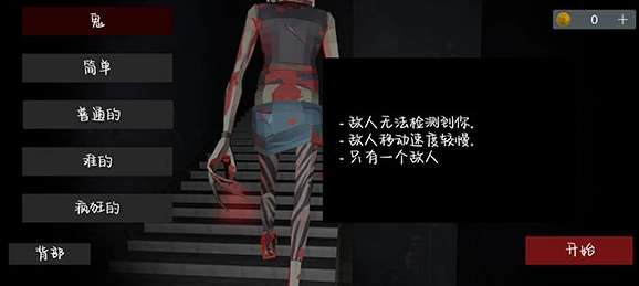 2、选择游戏难度,设有鬼、简单、普通、难、疯狂五个难度等级,可自主选择。
