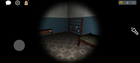 4、在游戏初始状态下,玩家持有可关闭的手电筒,界面左上角设有聊天、设置和背包功能,背包用于在游戏过程中收集线索类道具。