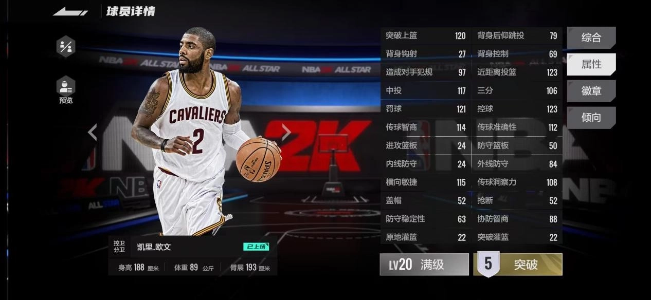 ①游戏中每个球员的属性数值都是不同的,让人很直观体现当前球员各属性数值情况(可以通过升级、突破来提升数值)。