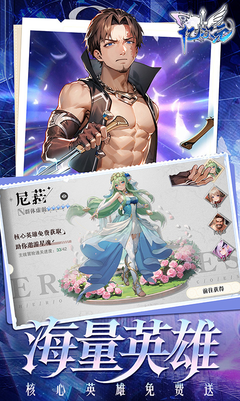 4、完成任务,上线当日免费获取四大核心英雄,推图过关不是梦