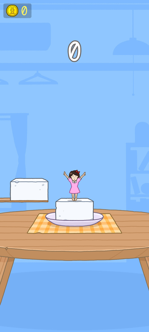 2、这里以经典模式为例,点击开始,进入游戏如图,玩家需操纵豆腐女孩进行跳跃来堆叠豆腐;