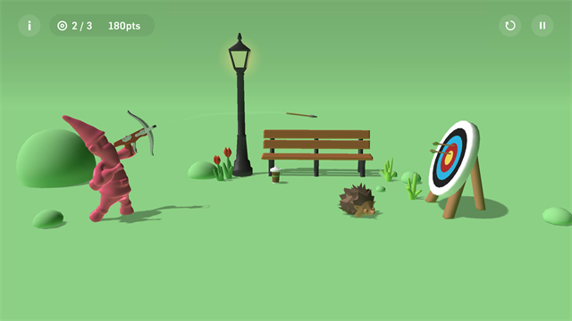 3、每个小关卡的内容都各有不同,玩家需要用一颗子弹击中一个物品,只有当子弹数量与物品数量相同时才能通关。游戏操作很简单,在右侧滑动即可轻松调整射击方向,点击左侧就能完成射击。左上角会显示靶子数量和已使用的子弹数,右上角则是重新开始和暂停退出的按钮。