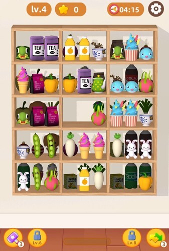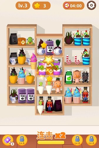 2、进入游戏后,玩家需找出相同的物品,将它们放置在同一个货架上就能完成消除。