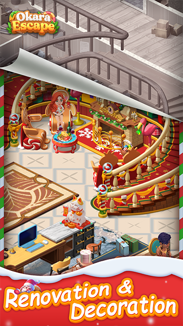 奥卡拉逃生游戏融合了家园装修建设与合成消除玩法,玩家需完成更多消除合成任务,获取更多道具及各类家具,把房间打造成自己喜爱的模样。