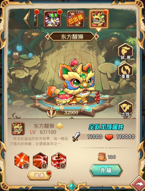 最后要为大家介绍的是在春节期间登场的强力宠物东方醒狮。传说在遥远的东方世界,生活着一群实力强大的神兽,东方醒狮就是其中的一员。作为春节活动推出的宠物,无论是名字还是外形,都洋溢着专属于我们的浓厚过年氛围。至于它的强大,更是无需怀疑!