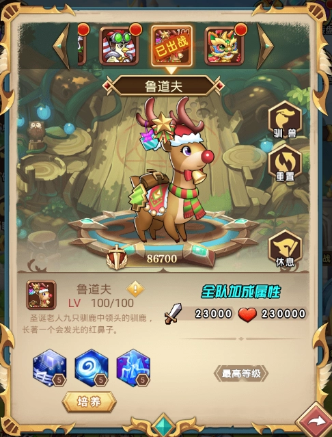 接下来要为大家介绍的是我们的第四位宠物——鲁道夫,它还有个俗称叫小鹿,是圣诞老人那九只驯鹿里领头的那一只,长着一个会发光的红鼻子。作为在圣诞节登场的宠物,它有着可爱的外表,一上线就瞬间收获了大批玩家的喜爱,它的能力更是不容小觑。