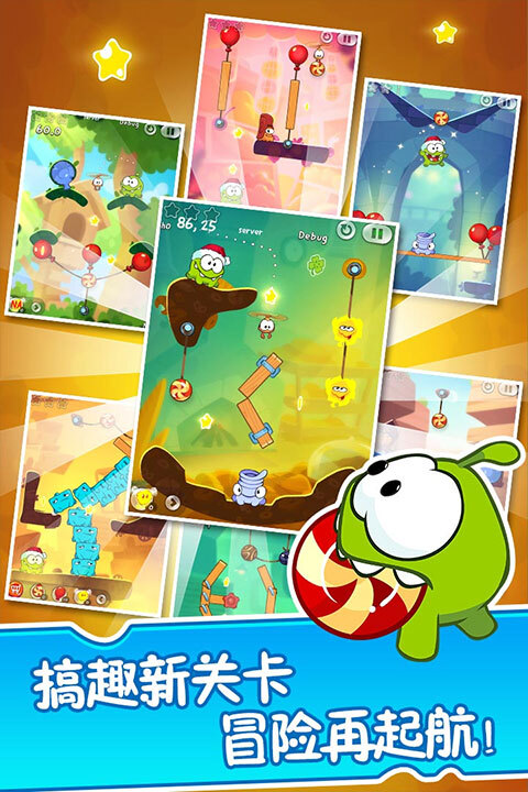 《割绳子2》作为一款全面升级的益智游戏,既完整保留了前作的核心玩法,关卡数量又较之前增加了近一倍,为玩家带来更丰富的乐趣与挑战。贪吃的OmNom将再次开启冒险之旅,等待你一同参与这场精彩的旅程。你还可以和好友一起收集各类萌趣的小怪物皮肤与多样背景,让每一次游戏体验都充满新鲜感。无论你是想在闲暇时放松,还是追求高难度挑战,《割绳子2》都是不容错过的优质选择。