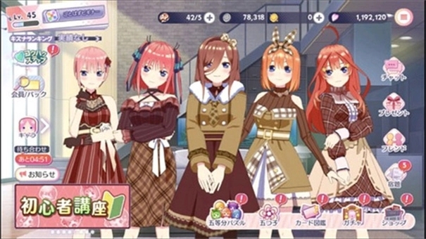 原作还原:忠实还原动漫剧情和角色设定,五胞胎姐妹性格鲜明,形象生动,让玩家仿佛置身于动漫世界。