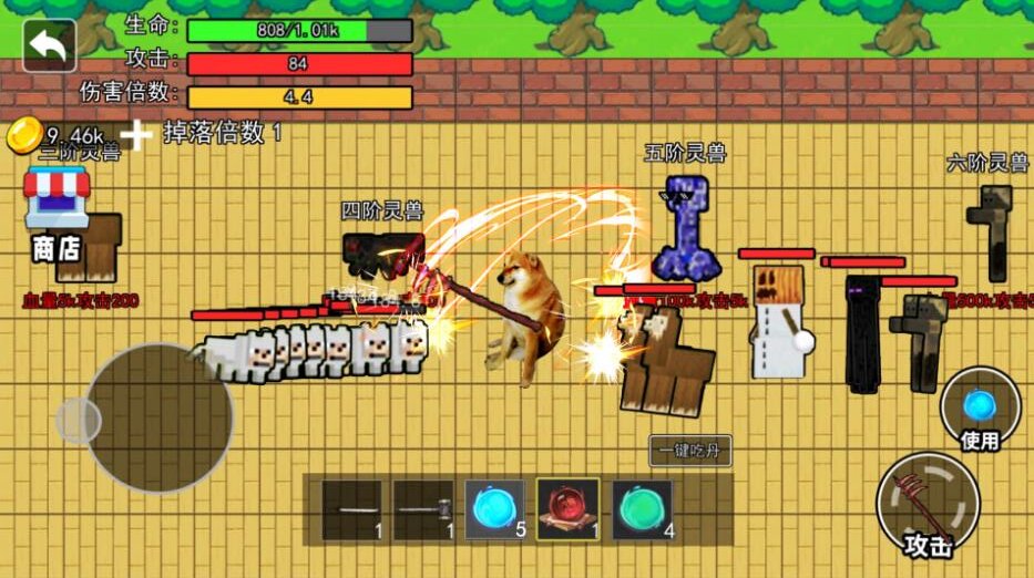 核心炼丹吃丹:游戏围绕“炼丹”与“服丹”展开,玩家需要收集材料、合成丹药,并喂给修勾以获取经验、提升属性。