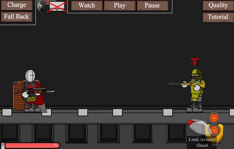 3、小人拥有丰富的动作,只要把握好攻击节奏和子弹的射击速度,利用移动、上下蹲起以及射击等按钮,就能享受爽快的战斗。
